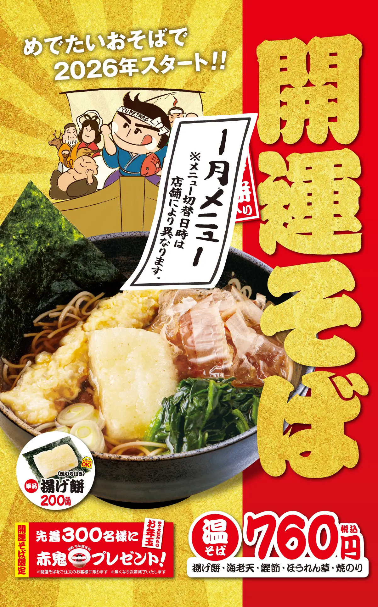 めでたいおそばで、2026年スタート!「開運そば(揚げ餅入り)」新登場!